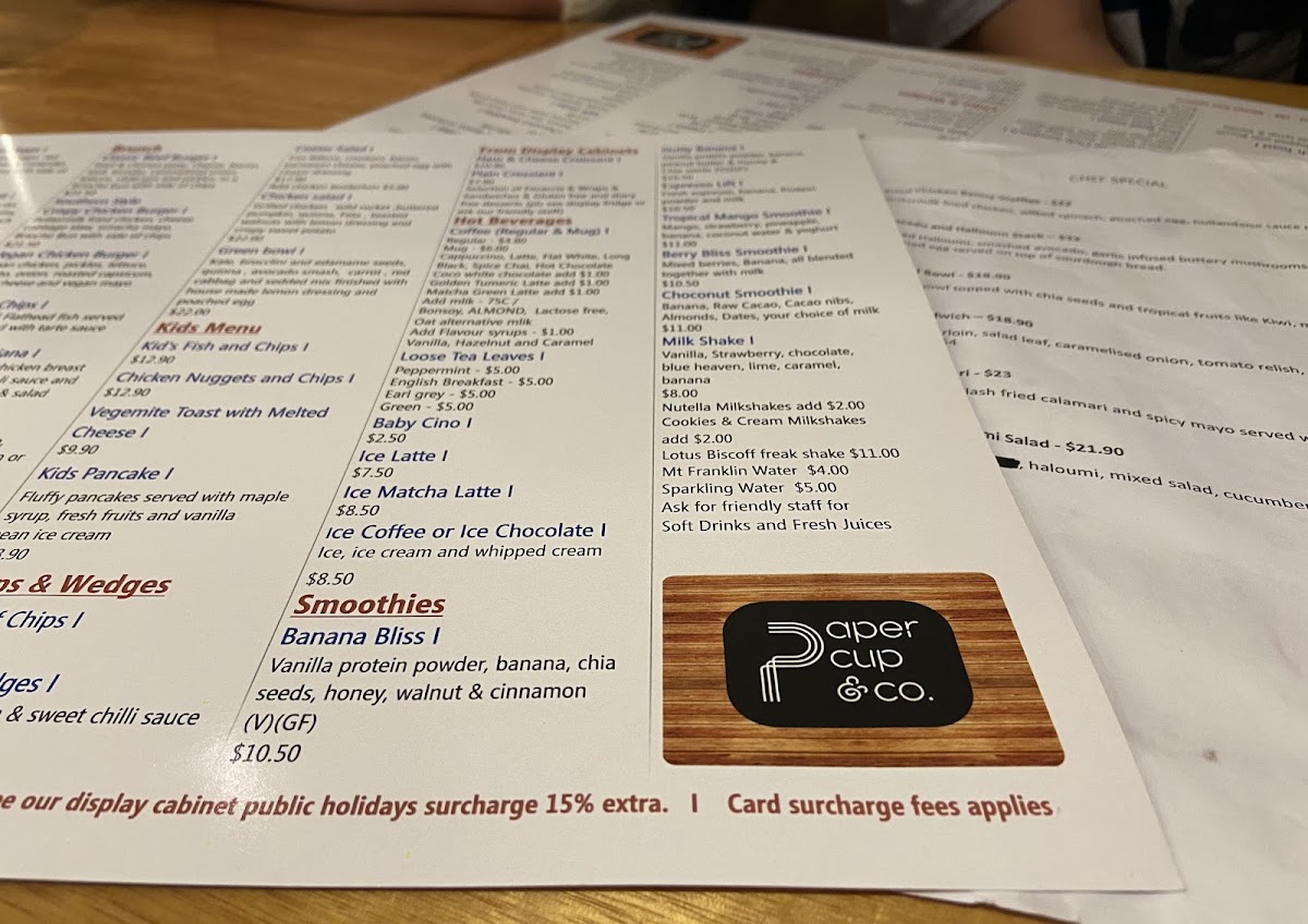 Paper Cup & Co Cafe Coffee Breakfast Brunch Menu